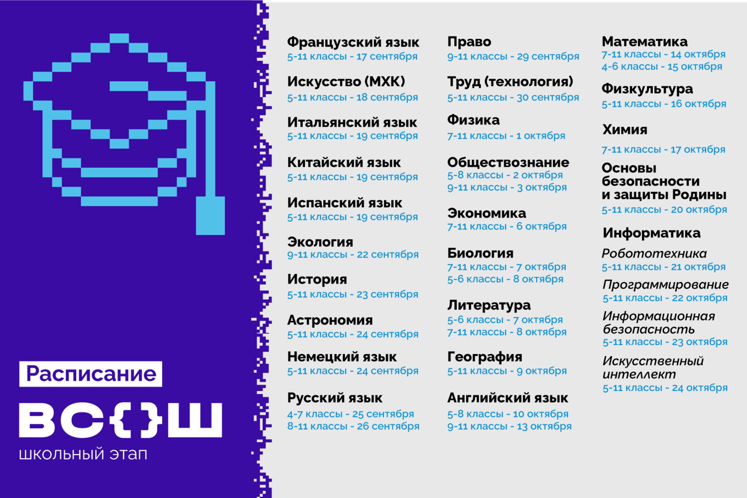 График проведения школьного этапа ВОШ 2025-2026 учебном году
